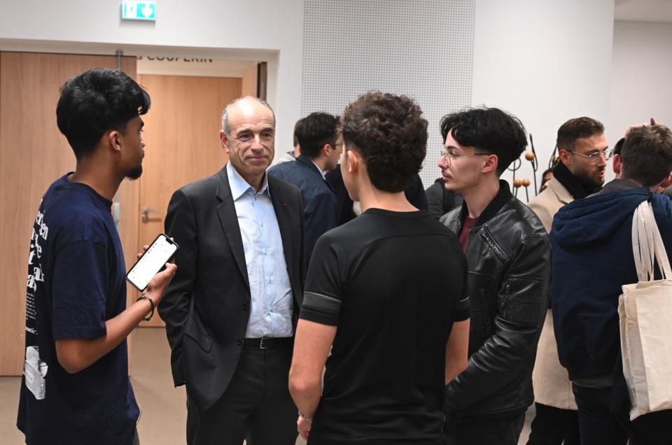 Bruno Bouchard, Président de l’Université Paris Dauphine-PSL, a ouvert la soirée et rappelé que la réussite ne dépend pas d’où l’on vient, mais de la qualité des opportunités offertes aux jeunes pour avancer.